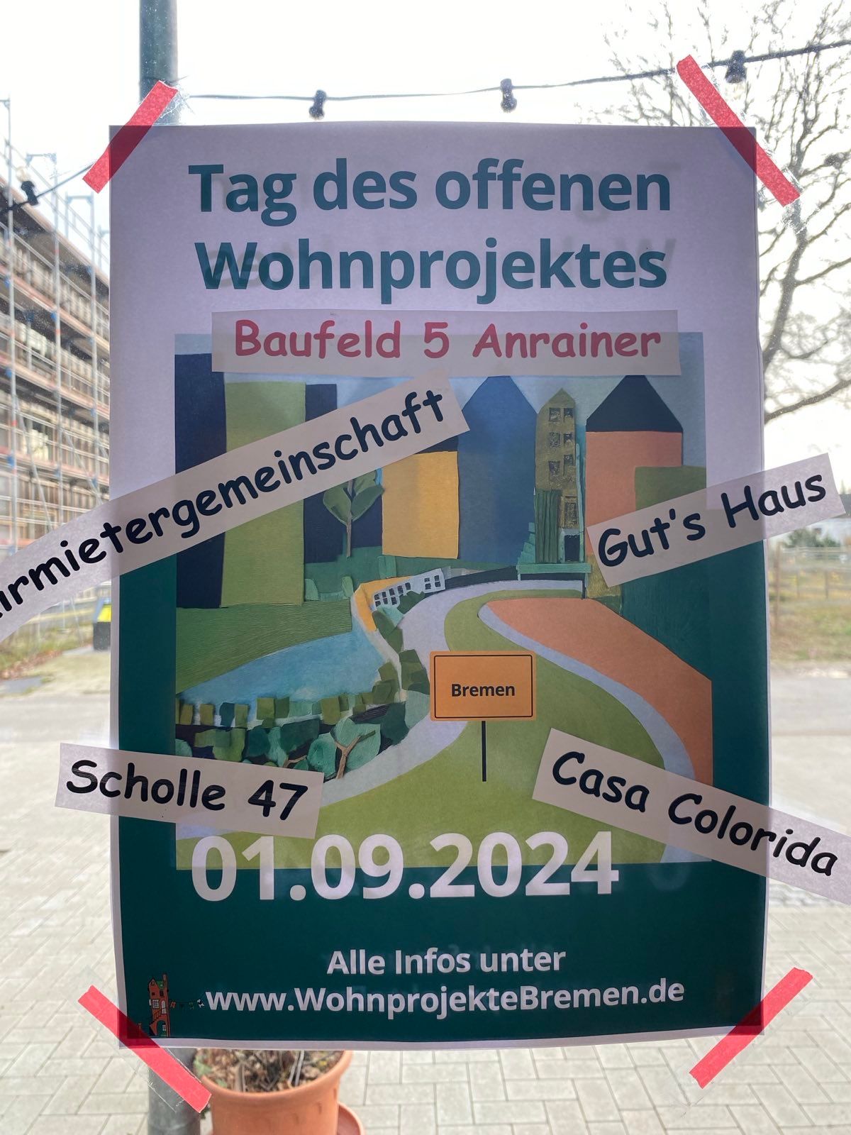 Tag der offenen Wohnprojekte – Wir laden ein! Am 31. August öffnen wir die Türen zu unserem Wohnprojekt und laden herzlich ein, uns und unser Konzept kennenzulernen. Erfahrt mehr über freie Wohnungen, unsere Idee vom gemeinschaftlichen Miteinander und wie wir im Klima- und Fahrradquartier leben. Für das leibliche Wohl ist gesorgt: Es gibt Kaffee, Tee, Saft und leckeren Kuchen. Auch an die kleinen Gäste haben wir gedacht – ein buntes Kinderprogramm wartet! Kommt vorbei, stöbert, fragt, lernt uns kennen – zwischen 14 und 17 Uhr. Ein Besuch lohnt sich! Wir freuen uns auf Euch!